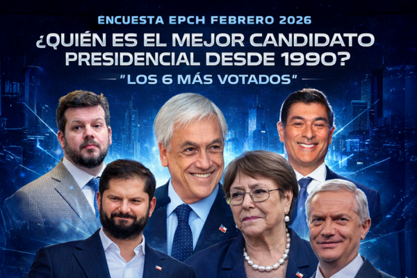 Encuesta EPCH Febrero 2026 – Mejor candidato presidencial desde 1990 – “Los 6 más votados” Desde el retorno a la democracia en 1990, Chile ha sido conducido por distintos liderazgos, cada uno marcado por su contexto histórico, sus aciertos y sus errores. Patricio Aylwin lideró la transición; Eduardo Frei impulsó la modernización; Ricardo Lagos consolidó…