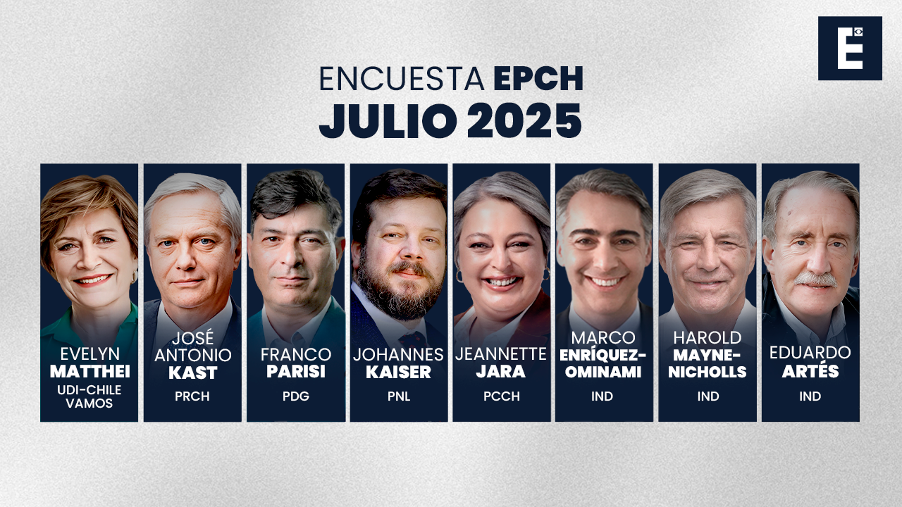 Encuesta presidencial EPCH, correspondiente al mes de julio del año 2025, en la encuesta de este mes tendremos 5 opciones presidenciales, más la opción NULO.
