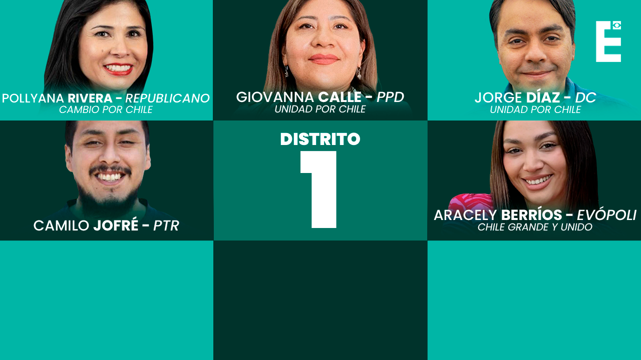 Los posibles candidatos a diputado por el distrito 1, correspondiente a las comunas de Arica, Camarones, General Lagos, Putre, todas comunas de la región de Arica y Parinacota, son los siguientes: