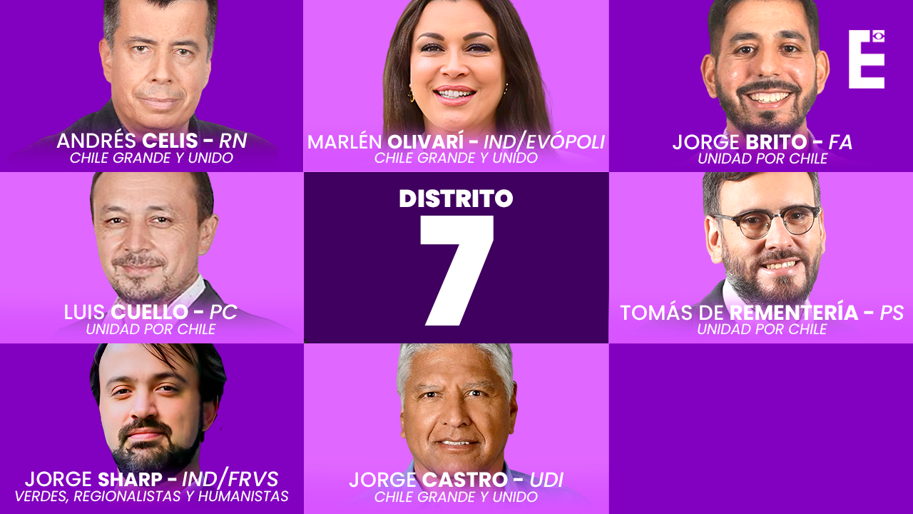 Los posibles candidatos a diputado por el distrito 7, correspondiente a las comunas de Algarrobo, Cartagena, Casablanca, Concón, El Quisco, El Tabo, Isla de Pascua, Juan Fernández, San Antonio, Santo Domingo, Valparaíso, Viña del Mar, todas comunas de la región de Valparaíso, son los siguientes: