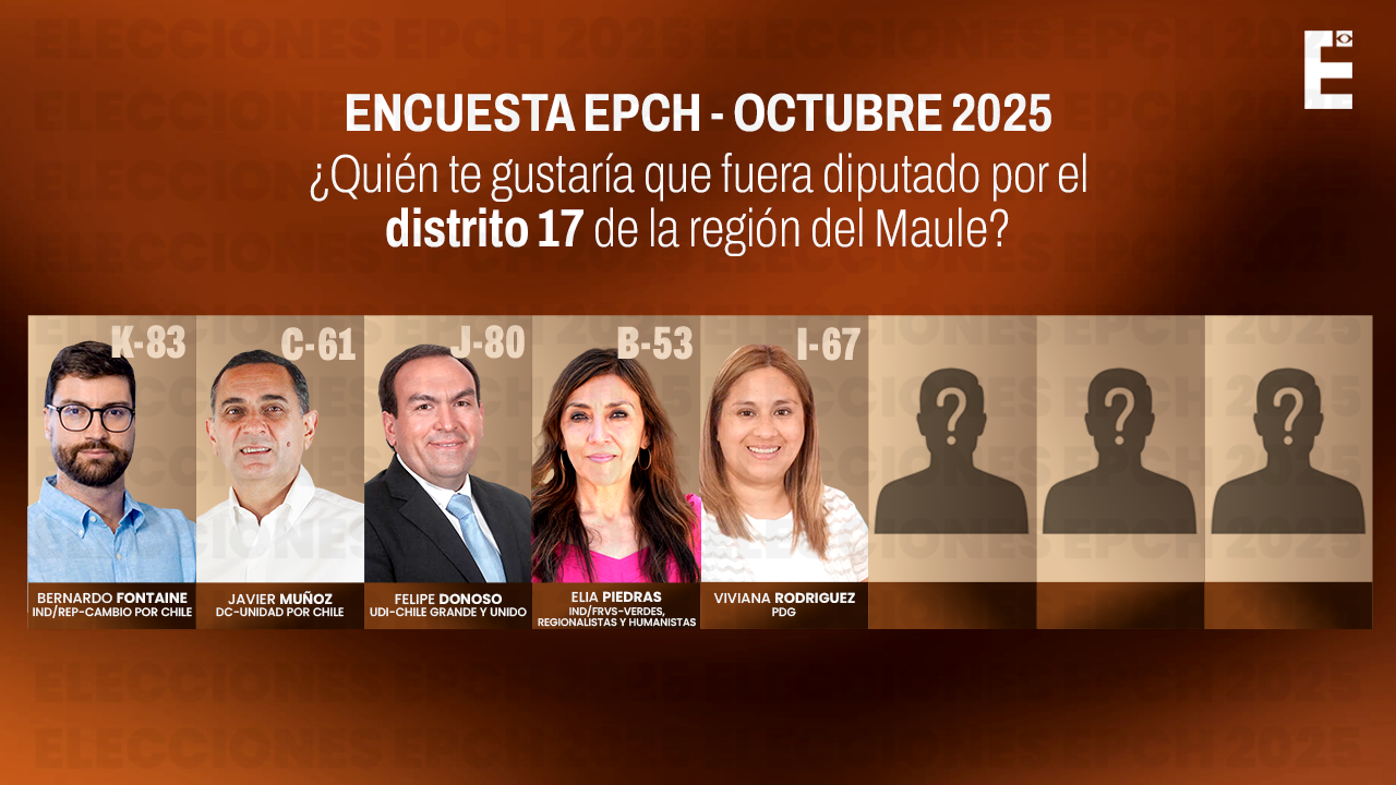 Los candidatos a diputado por el distrito 17, correspondiente a Constitución, Curepto, Curicó, Empedrado, Hualañé, Licantén, Maule, Molina, Pelarco, Pencahue, Rauco, Río Claro, Romeral, Sagrada Familia, San Clemente, San Rafael, Talca, Teno y Vichuquén de la región del Maule, son los siguientes: