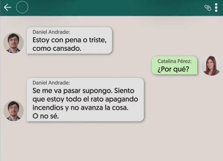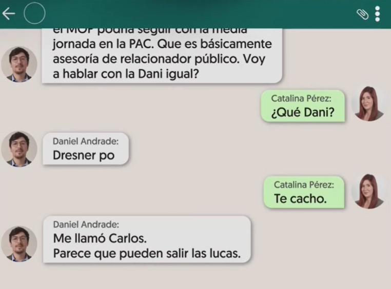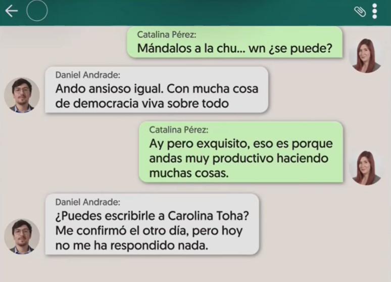 – Daniel Andrade: ¿Puedes escribirle a Carolina Toha? Me confirmó el otro día, pero hoy no me ha respondido nada.