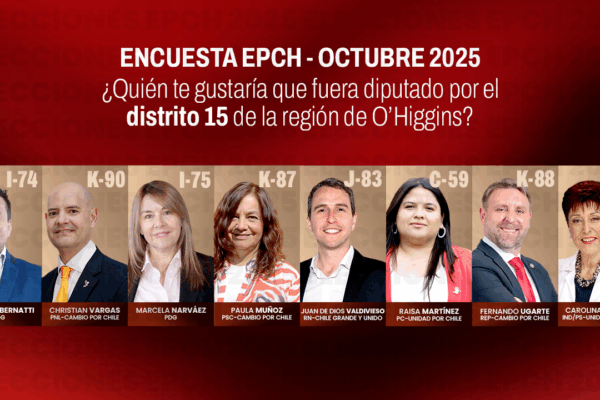 Encuesta EPCH – Diputado Distrito 15 – Octubre 2025 Distrito 15 (Rancagua, Codegua, Coínco, Coltauco, Doñihue, Graneros, Machalí, Malloa, Mostazal, Olivar, Quinta de Tilcoco, Rengo y Requínoa) Las elecciones parlamentarias se realizarán el 16 de noviembre de este año 2025, en la cual se elegirán diputados y senadores en todo Chile. En el caso que…